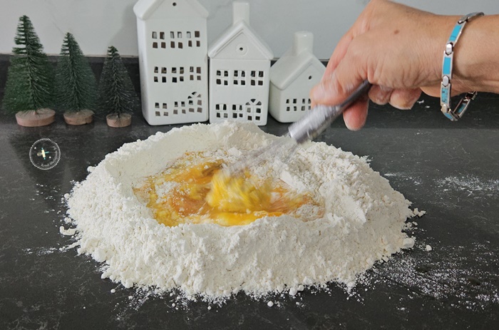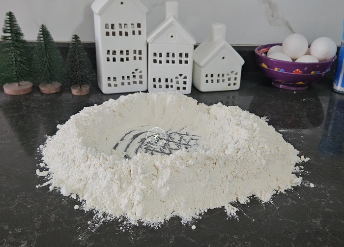 1. Hamuru hazırlayacağınız zemine veya kaba unu alın ve ortasını havuz gibi açın.