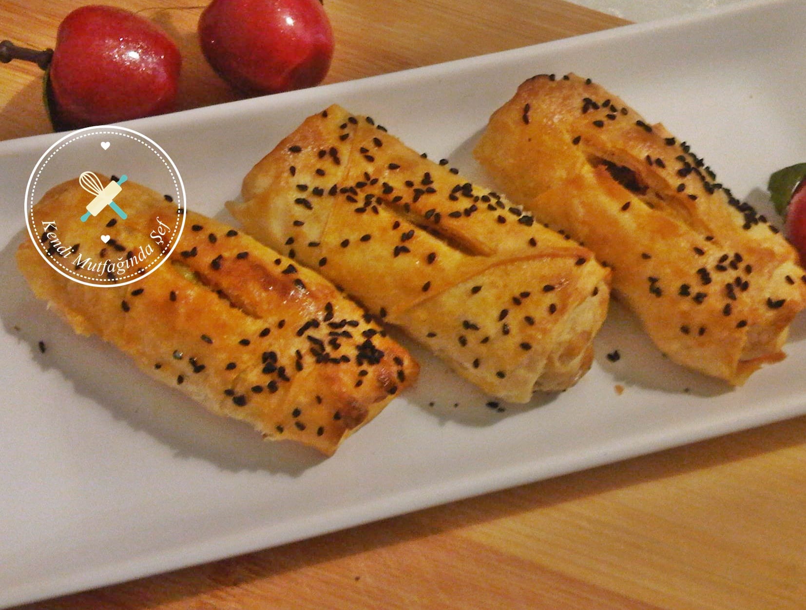 Sigara böreği gibi iç malzemesinden kaşık yardımı ile yufkanın kenarına koyulur.