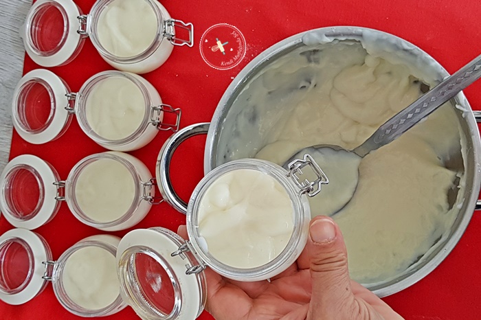 Ben küçük boy kavanozlara ve 2 büyük su bardağına doldurdum.