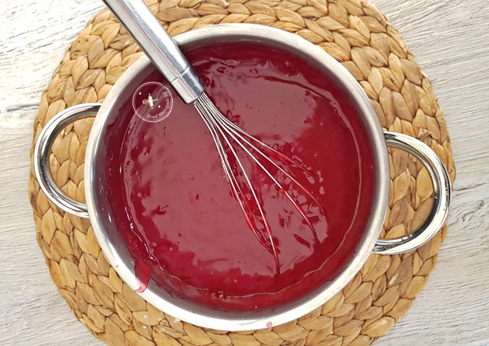 Alt katına sütle hazırladığım sade muhallebiyi, üzerine nar suyu ile hazırladığım renkli muhallebiyi doldurdum.