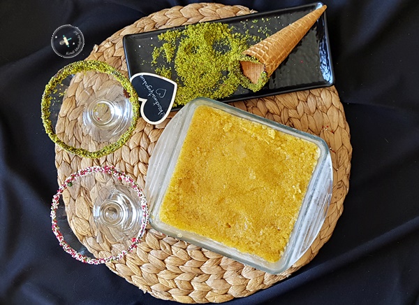 1 Çay kaşığı safranı rengini vermesi için 2 yemek kaşığı sıcak suyun içinde bırakın. Renk verdikten sonra buzdolabına kaldırın soğusun.