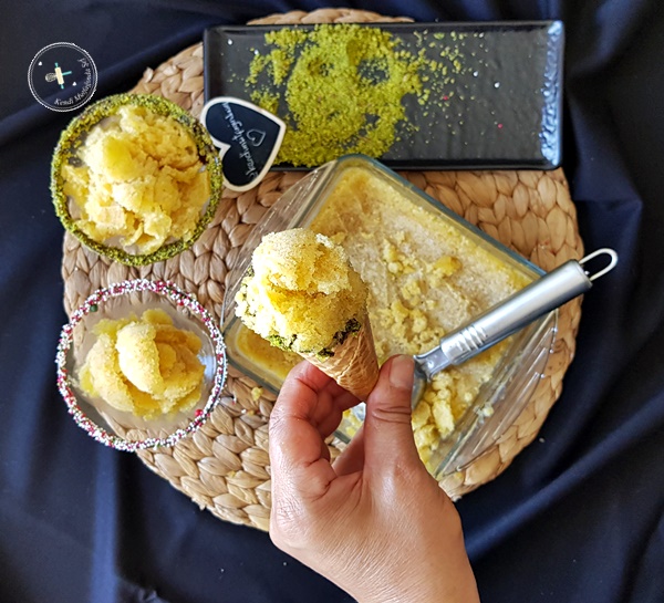 Kavunlu muzlu sorbeye renk vermesi için, bir çay kaşığı kadar safran kullandım. Varsa kullanın, yoksa daha açık renkli de olur. Veya biraz zerdeçal kullanın.