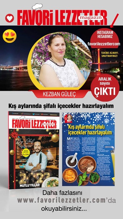 Favori Lezzetler Magazin e-Dergi Aralık 2021 için hazırladığım,“Kış Aylarında Şifalı İçecekler Hazırlayalım” yazımla sizleri başbaşa bırakıyorum. Çeşit çeşit bitki çayı tarifleri için buyrun.