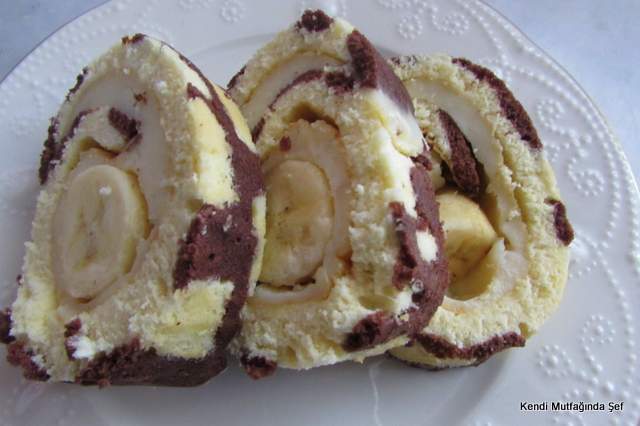 Kremasını sürün. Ben içine uç kısmına bir sıra muz koydum.