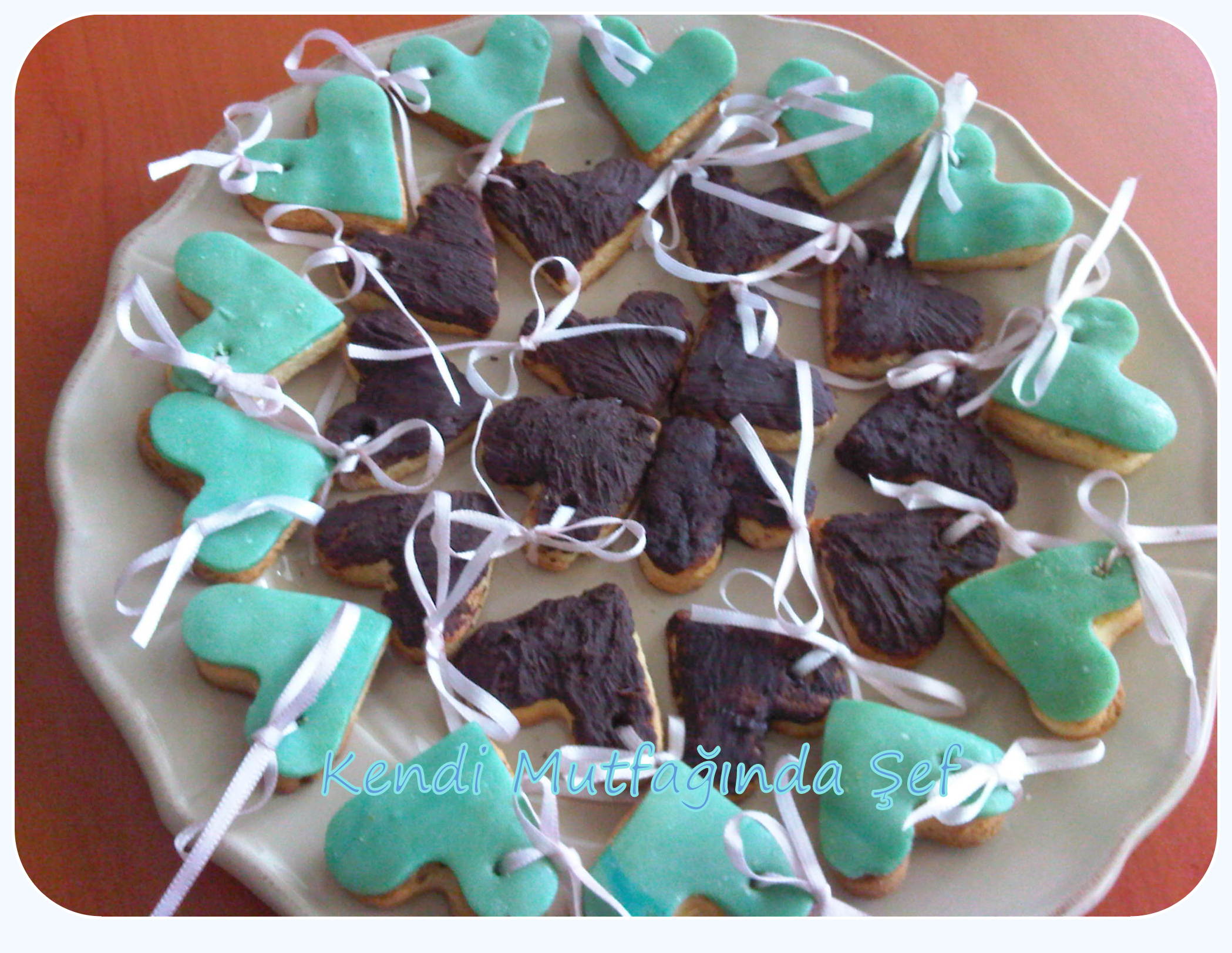 Bu kurabiyeyi hazırlayıp ailenize, arkadaşınıza götürmek istemez misiniz. Çok güzel hediye olur bence. İstediğiniz renk kurdele ve şeker hamuru ile süsleyebilirsiniz.
