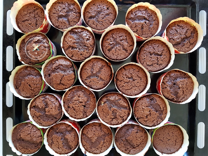 Mikserle son kez şöyle bir karıştırın ve cupcake kalıplarına çok dolu olmayacak şekilde boşaltın.